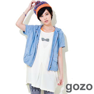 【gozo】傘擺胸前俏皮掛飾造型配色上衣(共二色)