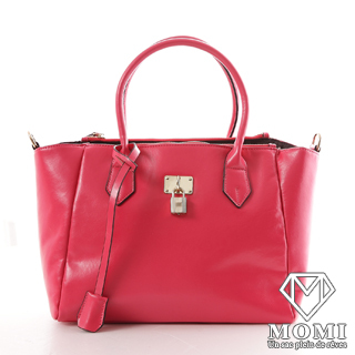 【MOMI】韓系甜心雙層拉鏈油臘牛皮鎖頭包(甜果莓紅)