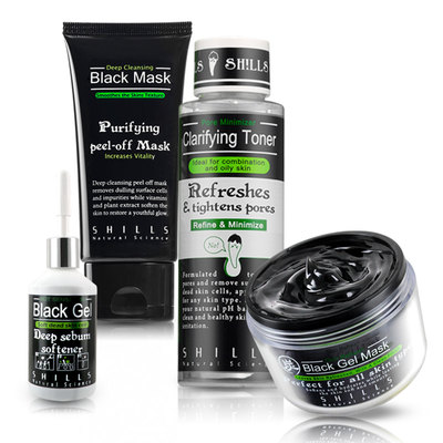 SHILLS舒兒絲-(挽臉活性碳4件組) 黑面膜+熱凝膠+隱形露+黑凍膜