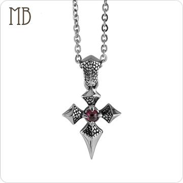 【MB流行鋼飾】潮流系列「龍麟十字(紅鑽)」白鋼項鍊