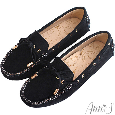Ann'S百搭單品.穿繩蝴蝶結豆豆底便鞋*黑