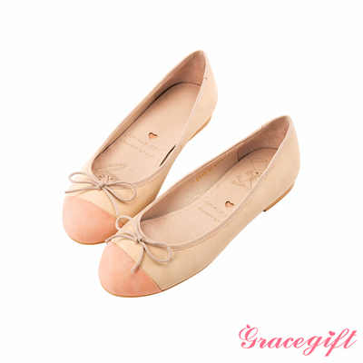 Grace gift夢遊愛麗絲-經典圓頭雙色綁帶蝴蝶結娃娃鞋 粉商品網址: