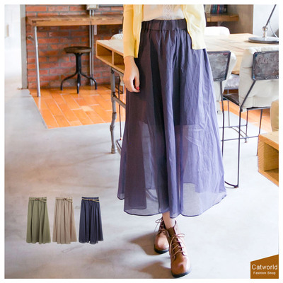 Catworld 附麻繩編織皮帶鬆緊長裙共三色