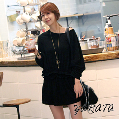 純素面蝙蝠袖長T恤(黑色)-ZARATA商品網址: