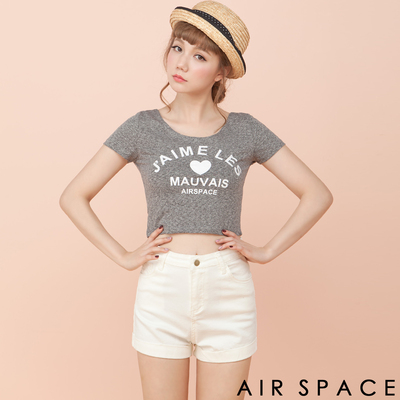 AIR SPACE 愛心英文字母印花短版上衣(嚴選灰)