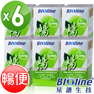 【BIOline】暢-呼!好順暢6瓶組(30錠/盒*6盒)