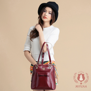 【MIYUNA真皮】首爾公主-Butterfiy蝴蝶後揹牛皮包(精緻酒紅)