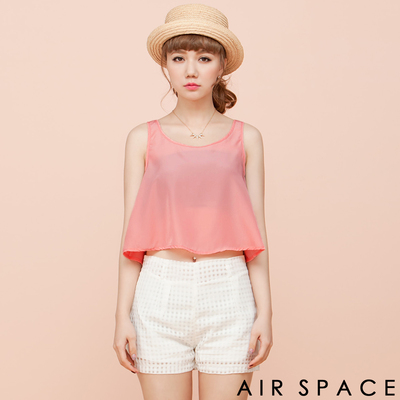 AIR SPACE 熱情仲夏短版無袖雪紡上衣(俏甜粉)