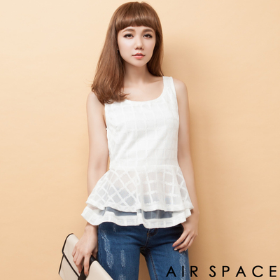 AIR SPACE 格紋雙層網紗傘狀衣襬無袖背心上衣(氣質白)商品網址: