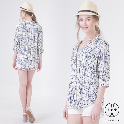 ORENDA-十字紋小開領帥氣單口袋襯衫-S.M.L-藍白
