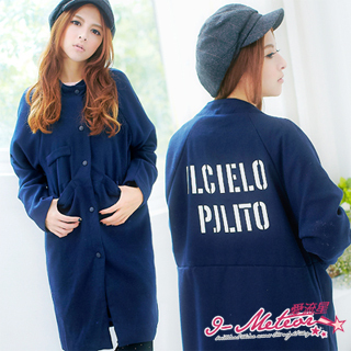 【I-meteor中大尺碼】後印英字立領圓釦口袋洋裝外套PA1830(雅緻藍)