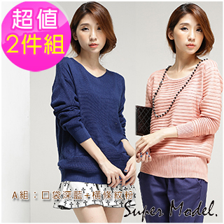 【名模衣櫃中大尺碼】組-秋季混搭素色針織上衣2件組(共四組-M-XXL適穿)