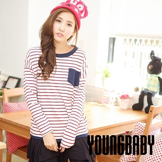 【YOUNGBABY中大碼】MIT 配色領左胸口袋條紋上衣(共4色)