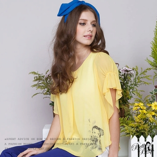 【Betty Boop貝蒂】蝴蝶袖假兩件雪紡紗上衣(共二色)