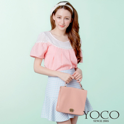 東京著衣-YOCO 鏤空拼接綴珠壓花上衣(共二色)