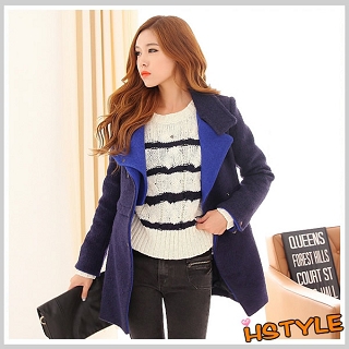 【創翊韓都】拼接修身中長款顯瘦毛呢大衣JZ3566(現貨+預購)