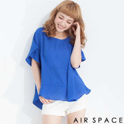 AIR SPACE 浪漫拼接衣襬輕柔雪紡上衣(亮眼藍)