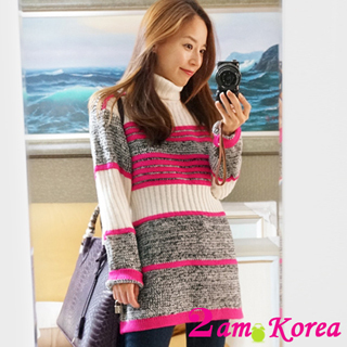 【預購2am Korea】混搭元素亮彩線條毛衣(共二色)