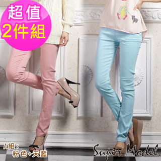 【名模衣櫃】夾-快速到貨-繽紛春夏色.輕刷毛鉛筆褲2件組(共5組可選M-XXL)