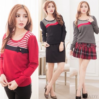 【EE-LADY】針織蝴蝶結條紋針織上衣(三色)商品網址: http://www.momoshop.com.tw/goods/GoodsDetail.jsp?i_code=3036781&memid=...
