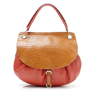 【101 Queen】雙色鴕鳥壓紋掀蓋牛皮包(3色)