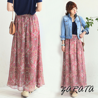 印花圖騰鬆緊長版長裙(粉色)-ZARATA