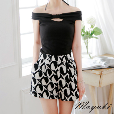 東京著衣-MAYUKI 黑白歐普圖騰鬆緊短褲-S.M(共一色)