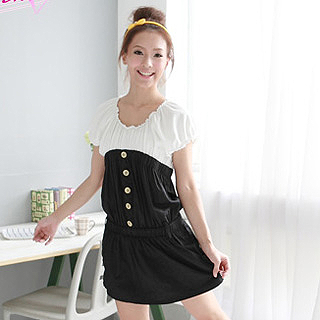【S-7L熊衣褲語】鬆緊包袖抓皺假兩件洋裝D201(黑、綠、可M-2L)
