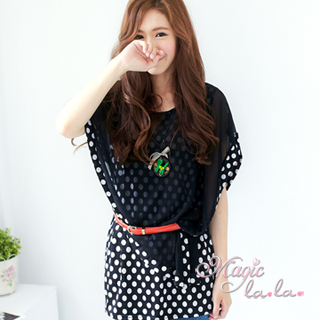 【Magic la.la.】圓點假兩件長上衣-Magic la.la.(自在黑)A304