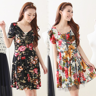 【Alice韓系館】快速到貨-冰絲印花收腰修臀顯瘦洋裝2件組(二組任選)商品網址: http://www.momoshop.com.tw/goods/GoodsDetail.jsp?i_code=26...