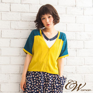 【CHILD WOMAN】雙色針織鏤空花網罩衫(紫/桔/芥黃)商品網址: http://www.momoshop.com.tw/goods/GoodsDetail.jsp?i_code=2297673...