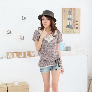 【S-7L熊衣褲語】V型蕾絲腰綁帶格紋長上衣 U158(黑、咖S-XL)商品網址: http://www.momoshop.com.tw/goods/GoodsDetail.jsp?i_code=97...