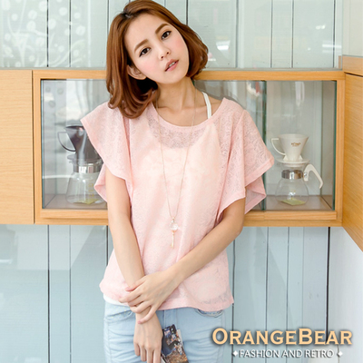 OB嚴選-荷葉袖蕾絲感花紋上衣?共二色