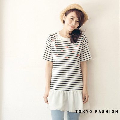 東京著衣 櫻桃條紋小裙擺上衣-S.M(共二色)-4006686