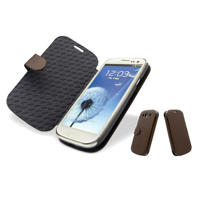 Kajsa Strip Leather for Galaxy S3 義大利牛皮側翻皮套,表面為斜紋處理,顏色棕色,附螢幕保護貼、拭鏡布、保貼刮卡。