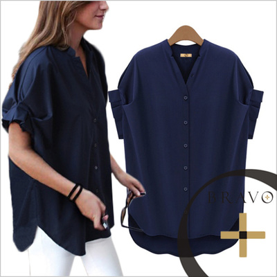 蝙蝠短袖V領雪紡襯衫?v Bravo