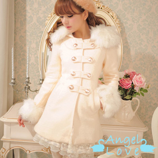 【現貨+預購Angel Love】浪漫毛毛連帽排扣毛呢大衣(米白色)