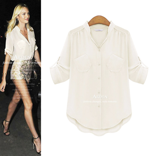 【預購Mani Mani】柔和色系雙袋抓皺反折袖襯衫(5色)