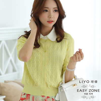 針織外套 韓系修身鏤空短外套(共3色)LIYO理優