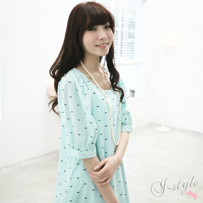 滿版小蝴蝶公主袖傘擺雪紡洋裝(共二色)-I-sTyLe商品網址: