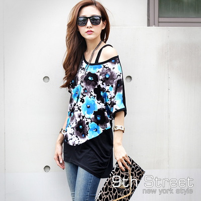9th Street 梵谷花彩圖騰韓版長版上衣