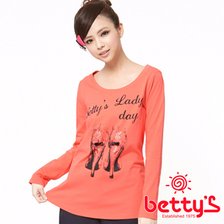 【betty’s貝蒂思】高跟鞋塗鴉鑽石鑲嵌T-shirt(橘紅)
