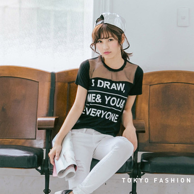 東京著衣 透膚紗拼接黑白字母T(共二色)
