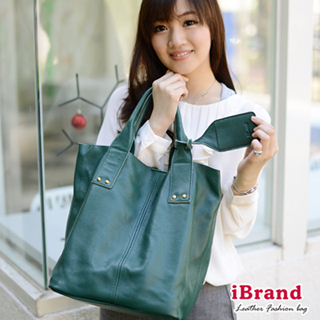 【i Brand 真皮包包】韓系百搭-實用牛皮吊牌大方包(深墨綠)