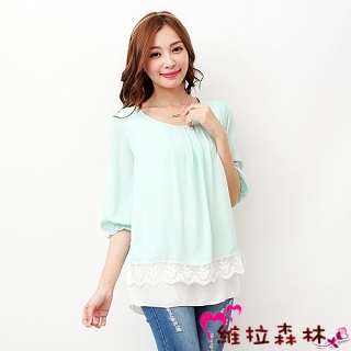 【維拉森林中大尺碼】綠色蕾絲蝴蝶結假二件上衣