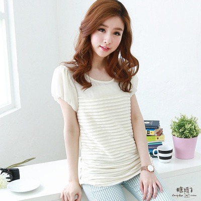 糖罐子-亮蔥條紋拼接雪紡棉衫(共二色)