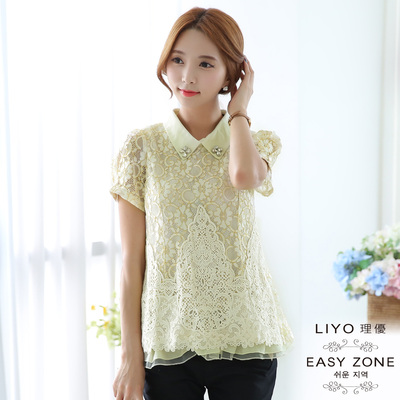 LIYO 理優 蕾絲上衣 韓系娃娃領釘珠勾花上衣(共一色)S-XL 4S5062