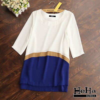 雪紡 拼接寬鬆中長版七分袖雪紡上衣-HeHa商品網址:
