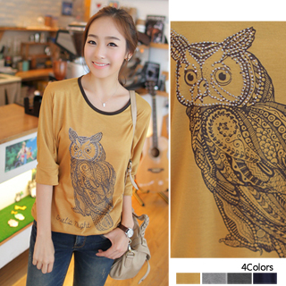 【預購 NJ-style】NEW韓國貓頭鷹雕刻圖上衣(4色 F)
