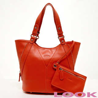 【LOOK】摩登時尚俐落剪裁真皮水桶2WAY包(百搭橘)商品網址: http://www.momoshop.com.tw/goods/GoodsDetail.jsp?i_code=2134576&me...